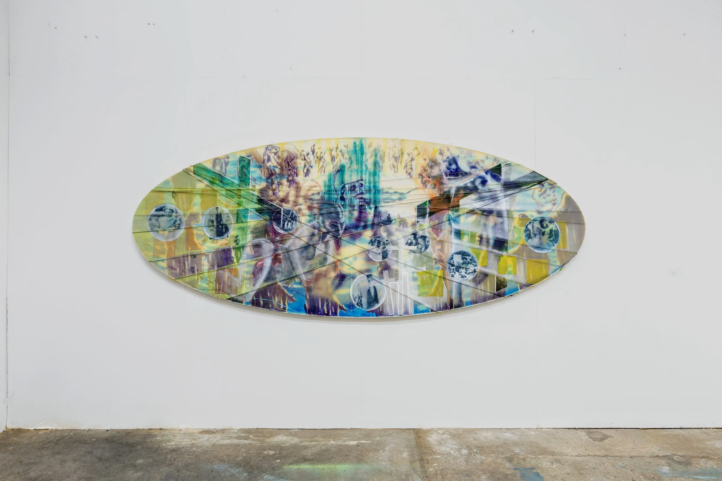 This combination of academic research and practical application of painting locates his work within a contemporary practice that often crosses boundaries between theory and production.